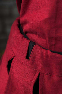 Crafted from premium, battle-ready materials, these hosen boast reinforced stitching for exceptional durability, while the gathered details at the knees provide both flexibility and a regal touch. The adjustable belt ensures a secure and comfortable fit, allowing you to move with confidence—whether on the battlefield or in the royal court. The deep dark red finish enhances the commanding presence of any warlord, knight, or strategist.