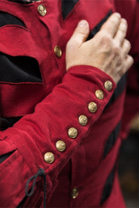 These sleeves feature laces and can be easily attached to one of our doublets or jerkins to complete the look. One sleeve is included. By turning the sleeve inside out, it can be attached on the right or left arm.